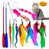 Traje nuevo para gatos transfronterizo Oruga pluma pez cabeza de repuesto varita retráctil caña de pescar palo divertido para gatos