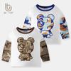 Camiseta infantil malwee otoño nueva europea y americana infantil casual cuello redondo estampada manga larga top básico