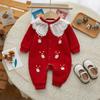 Ropa de bebé invierno mono de bebé niña con forro polar cuello de encaje abertura frontal hebilla ropa para recién nacido mono de bebé