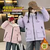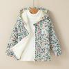 Chaqueta con Forro de Polar para Niña 2026 Nuevo Estilo Cortavientos Floral con Capucha, Moda Coreana Super Elegante Manga Larga