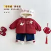 Conjunto de Año Nuevo para Niña con Lazo 2025 Nuevo Invierno Bebé Estilo Chino Chaqueta de Algodón Bordada con Capucha Ropa de Algodón para Niños Tendencia