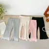 Ropa de Otoño para Chicas Dropshipping Nuevo Color Puro Pantalones de Algodón Pique Leggings Acampanados Casuales para Bebé Bebé