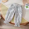 Pantalones de Verano Finos de Algodón Puro con Estampado Floral para Niñas, Estilo Occidental Holgado, Bombachos para Bebé, Pantalones de Algodón Puro, Finos de Verano, Modernos