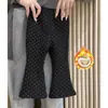 2025 Nuevo Estilo Ins Pantalones de Campana Forrados de Felpa para Bebé Niña Otoño/Invierno Casual Versátil Simple Lunares Pantalones Largos Ropa Infantil