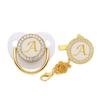 Nuevo chupón calmante de oro rosa transfronterizo para jugar en la boca con cadena de diamantes 26 letras chupón calmante para bebés al por mayor