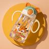Vaso de Agua para Niños Vaso para Beber Directamente Vaso Graduado con Pajita Vaso de Plástico para Bebé Vaso de Doble Uso Vaso con Animales de Dibujos Animados Vaso con Doble Asa