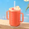 Taza de Plástico Simple de Verano para Niños, Taza de Agua Portátil para Exteriores, Taza con Popote y Cordón para Guardería, Taza de Aprendizaje con Asa