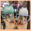 Vaso de Agua Infantil de una Sola Asa, Vaso de Plástico para Uso Escolar, Botella de Agua Portátil con Pajita para Bebé y Jardín de Niños con Diseño de Dibujos Animados