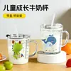 Taza de Desayuno Graduada de Vidrio Espeso para Niños para Uso en Casa con Tapa y Popote, Taza de Leche Estilo Simple, Vaso de Vidrio de Dibujos Animados