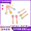 Vajilla de entrenamiento de alimentos complementarios de pasta de arroz de grado alimenticio transfronterizo, de cabeza suave, para comer a bebés, a prueba de caídas, de silicona completa, juego de cuchara y tenedor