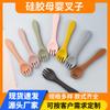 Explosiones Transfronterizas Silicona Mango de Madera Tenedor Cuchara Entrenamiento Cuchara para Alimentos Complementarios Grado Alimenticio Bebé Entrenamiento Comiendo Tenedor Cuchara traje