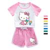 Traje de verano para niños de dibujos animados de gato KT 2023 Nuevo para niñas, moda casual, camiseta de manga corta, shorts, dos piezas, delgado