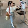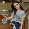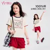 Camiseta de Moda de Algodón Puro Estilo Coreano con Letras para Niña, Verano Nuevo Estilo para Mujeres, Niños Medianos y Grandes 6-12 Tops Holgados Modernos