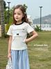 Camiseta de Verano para Niños Estilo Europeo y Americano Transfronterizo 2025, Camiseta Creativa de Manga Corta para Niñas Estilo Europeo y Americano, Cuello Redondo, Algodón Elástico
