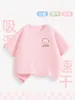 Camiseta de Manga Corta para Niña Algodón Dibujos Animados Guardería Bebé Media Manga Clase A Pijama Elástico Top para Niña Pequeña Delgado Verano