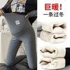 Pantalones largos de otoño e invierno para embarazadas, pantalones cálidos de terciopelo, bragas cómodas sin costuras, pantalones de fondo gruesos con forro polar para embarazadas.