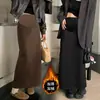 Falda Midi de Maternidad de Moda 2025 Invierno Nueva Moda Lana Abertura Trasera Forro Polar Cálida Adelgazante Bodycon