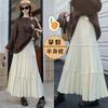 Falda Plisada con Forro de Polar para Maternidad 2026 Nuevo Estilo Otoño e Invierno Sin Soporte Abdominal Falda de Longitud Media con Cordón
