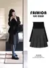 Falda Tejida Negra Gris para Mujeres Embarazadas Otoño e Invierno Lijado Falda Midi en A para Mujeres Embarazadas Temperamento Gran Vuelo Falda de Arroz Glutinoso