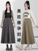 Falda Midi de Maternidad de Moda Otoño Invierno Nueva Moda Algodón Felpa Adelgazante Falda de Línea A
