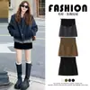 Falda de Maternidad Falda Media de Lana Otoño Invierno 2026 Estilo Nuevo Adelgazante con Terciopelo Falda Corta de Línea A Falda Petite Ajustada a la Cadera
