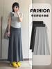 Falda Larga de Maternidad Primavera 2026 Nueva Casual Perezosa Línea A Media Longitud Sin Soporte para Barriga Falda Larga Suelta Gris