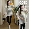 Blusa de maternidad 2024 Verano nuevo estilo coreano longitud media camiseta a rayas moda holgada casual combinable ropa de maternidad
