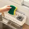 Cesta colgante para almacenamiento de esponjas de fregadero de cocina, botón ajustable, escurridor de esponjas, bolsa colgante para almacenamiento de grifo