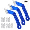 15 piezas de rastrillo de bisel azul, raspador, herramienta de limpieza, combinación de sierra para juntas de azulejos de pared y piso