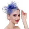 Acessórios para cabelo com flores de malha retrô transfronteiriça, acessórios para cabelo com penas de noiva, para festival de corrida de cavalos, chá, bola, arco de cabelo