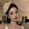 Socialite Francesa Bege Herdeira Renda Flor Pequeno Chapéu de Coco Estilo Retrô Coco Presilha de Cabelo Vestido Qipao Fotografia Acessórios de Cabelo