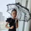 Nuevos accesorios para fotografía de bodas, paraguas de flores, paraguas transparente con flores adhesivas, para exteriores, viajes, fotografía, pequeño, fresco, de moda, estilo simple, paraguas de mano.