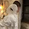 Vestido de Novia Principal Primavera y Verano Estilo Coreano Talla Grande Nueva Novia Estilo Bosque Un Hombro Manga Larga Mangas Campana Soñador Sencillo 2025 Mujeres