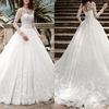 Comercio exterior comercio electrónico transfronterizo encaje cola vestido de novia hombro manga larga temperamento delgado vestido de novia principal Amazon AliExpress caliente