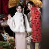 Chal Blanco para Vestido de Novia Combinado con Cheongsam, Nuevo Estilo Otoño e Invierno con Terciopelo Añadido y Engrosamiento, Noble Nueva Ropa de Abrigo Estilo Chino