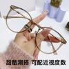 Celebridad de Internet Marco Redondo Ligero Espejos Planos Frescos para Mujer con Visión de Corto Alcance Estilo Coreano para Mujer Combinan con Todo Gafas Anti-luz Azul Sin Graduación