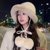 Sombrero de Mujer Otoño e Invierno Sombrero Mongol Versátil Lindo Gamuza Bola de Pelo Protección para Orejas Sombrero Lei Feng Cálido a Prueba de Frío Sombrero de Felpa
