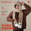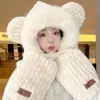 Sombrero de Oso Meetsunny, Bufanda y Guantes Todo en Uno para Mujer, Invierno, Felpa Engrosada, Lindo, Estudiante, Cálido, Conjunto de Tres Piezas