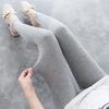 Otoño e invierno Nuevas mallas grises de azafata de piel sintética con relleno de terciopelo para mujer, pantalones de una pieza de cintura alta, pantimedias transparentes.