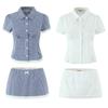 Exportación Transfronteriza Ropa de Mujer Verano 2025 Estilo Europeo y Americano Camisa de Cuadros con Encaje Empalmado + Traje de Falda para Mujer C27574/5F