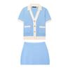 Exportación Transfronteriza Ropa de Mujer 2025 Verano Europeo y Americano Color Contrastante Chaqueta de Punto de Manga Corta + Traje de Falda de Punto K526049