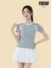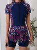 Traje de baño deportivo de color bloqueado nuevo 2025 para mujer, traje de baño de dos piezas con falda dividida conservadora, look adelgazante para aguas termales