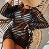 Vestido sexy con aberturas, blusa de playa, bikini, protector solar, blusa, vestido tejido largo y fino estilo INS