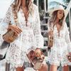 Vestido de Playa para Mujer de Estilo Nuevo Transfronterizo de Comercio Exterior Europeo y Americano, Vestido Sexy de Encaje Transparente de Manga Larga con Cuello en V para Mujer