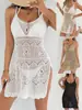 Falda con Tirantes para Mujer Ropa Transfronteriza Europea y Americana Suéter Calado Escote en V Profundo con Abertura Vestido Cubre Bikini de Playa