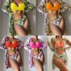 Mingyi 2024 nuevo bikini de moda europea y americana de alta gama sexy estampado multicolor traje de baño de tres piezas para mujer
