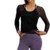 Hermosa ropa de yoga transpirable con malla en la espalda, top deportivo de dos piezas desmontable, manga larga para mujer