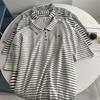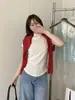 2025 Verano Polo Solapa Falso Dos Piezas Estilo Preppy Contraste Camiseta Manga Corta para Mujer Holgada Casual Versátil Top Ins