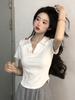 Camiseta de manga corta con hombros descubiertos, cuello polo, cuello en V, manga corta, verano, nuevo diseño ajustado, Sense Niche