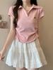 Camiseta corta con cuello POLO para mujer, novedad de verano 2023, estilo bf, top corto sexy para chica, diseño de manga corta para mujer, sentido de nicho